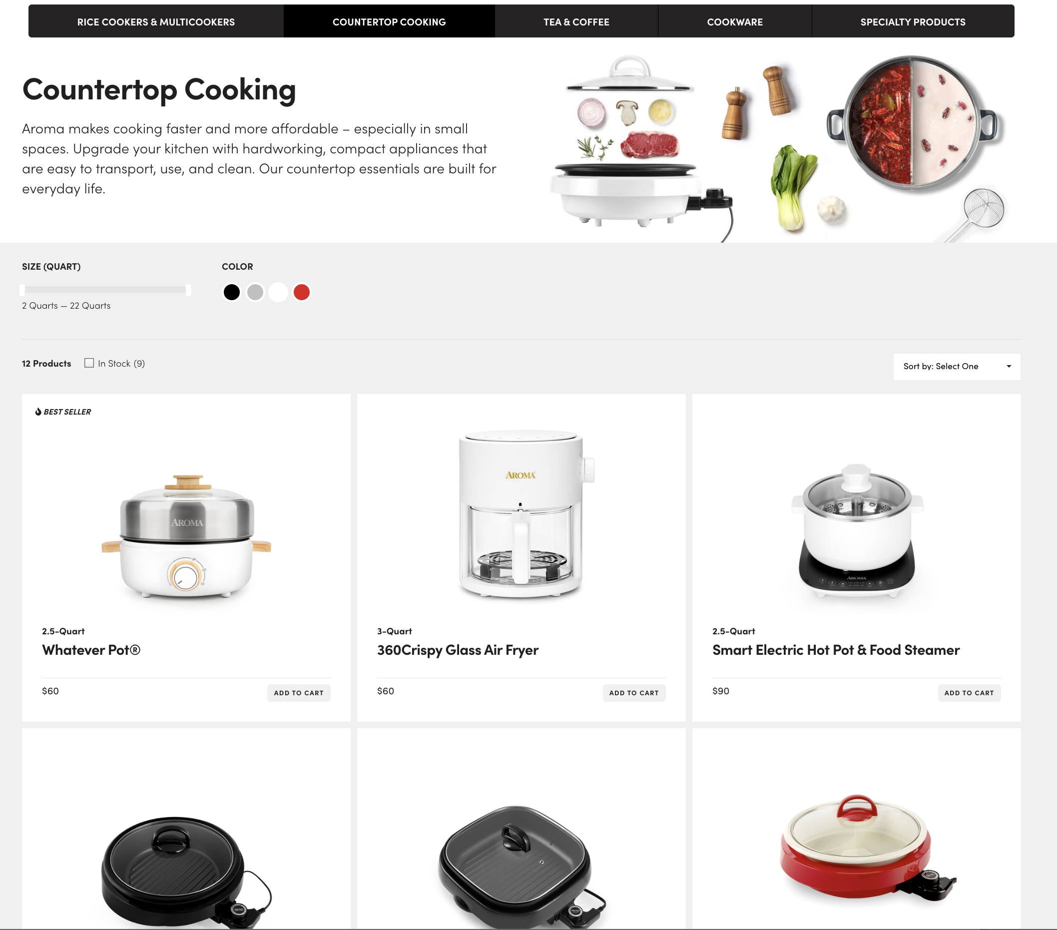 Revamping Aroma Housewares’ digital presence with a modern e-commerce site, with enhanced user experience through an intuitive interface, simplified navigation, and appealing design features. Users will benefit from quick loading speeds, straightforward product browsing, and smooth checkout options. Additional functionalities such as tailored product suggestions and customer feedback will support informed buying choices. The design reflects Aroma Housewares’ dedication to quality and innovation while embracing contemporary visual elements, fostering an engaging online environment for both returning and new customers.